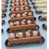 Chocolate and red fruit cake tube: chocolate cakes, red fruit compote, chocolate “rocher” glaze, chocolate topping