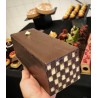 Damier Cake (chess cake):chocolate genoa sponge cake, orange genoa sponge cake, chocolater ganache, opéra glaze