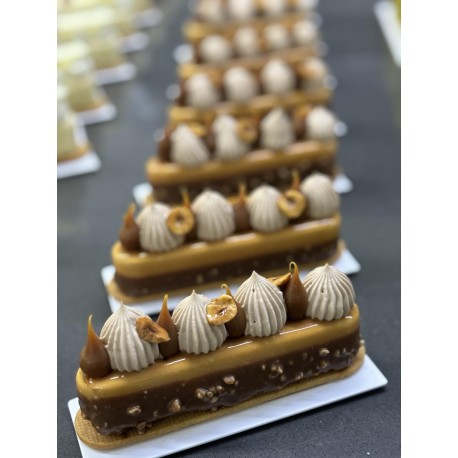 LEARNING: Students will learn how to make the preparations mentioned below. They will not only learn the recipe, they will also learn the most essential techniques for creating cakes, temperatures, textures, flavour balance, stabilization, product integration, all knowledge to be implemented when making any cake recipe in the future.