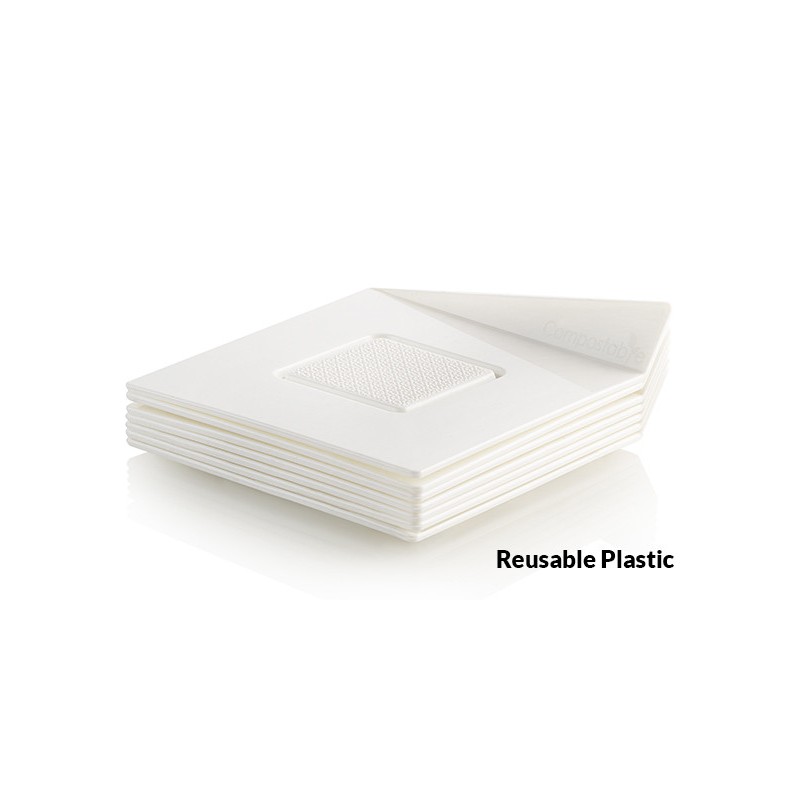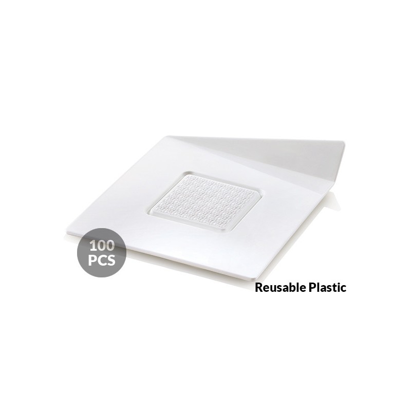 Set de 100 bandejas individuales cuadradas. Color blanco.