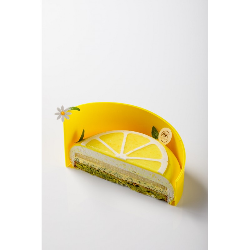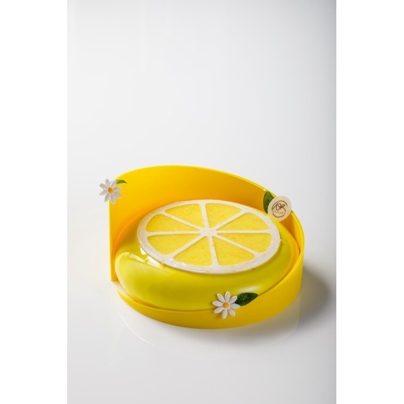 1) Lemony (nueva versión 2025): Bizcocho de limón y albahaca, crema de limón y albahaca, gelatina de limón, mousse de limoncello, glaseado espejo de limón, gel de limón y albahaca.
