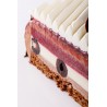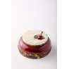 3) Black Forest: Bizcocho tierno de chocolate, confit de guindas, namelaka de kirsch, mousse de chocolate negro, glaseado espejo burdeos de chocolate negro.