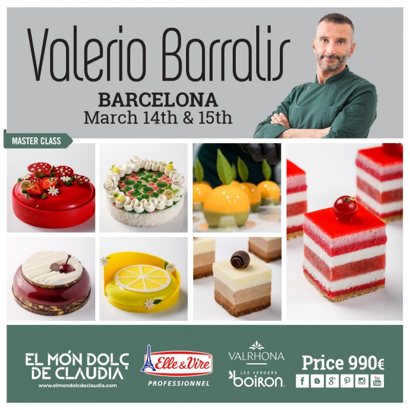 Valerio Barralis es apreciado sobre todo por la estética de sus postres que, en su idea, tienen que combinar con su sabor. De hecho, uno de sus mantras es «primero comemos con los ojos, luego con la boca». El objetivo de la masterclass es crear un variado y colorido buffet de mignons seleccionados entre las decenas que ha creado el Chef en los últimos años. Valerio Barralis también se centrará en la teoría detrás de la estructura y composición de un postre moderno y compartirá con los alumnos todos sus trucos para hacer mousses, crémeux, glaseados, bizcochos, etc.