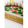2) Fraisier (sin gluten): Bizcocho trocadéro de pistacho con fresas frescas, capa crujiente de pistacho, gelatina de fresa, namelaka de pistacho salado, crema diplomática de vainilla, glaseado espejo rojo.