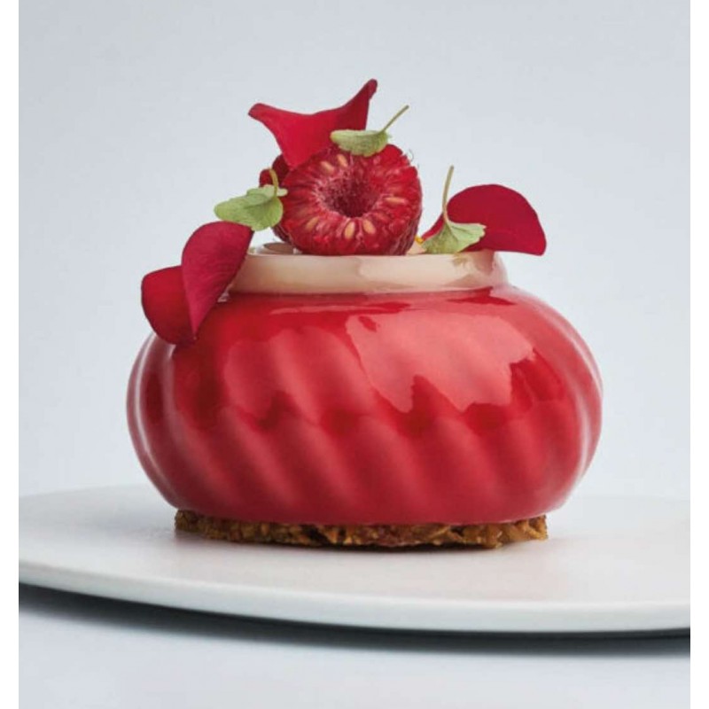 5- Lichi y frambuesa: Mermelada de lichi y frambuesa, Cremoso de frambuesa, Bizcocho, Mousse de frambuesa y rosa, Glaseado de frambuesa, Gelatina de lichi