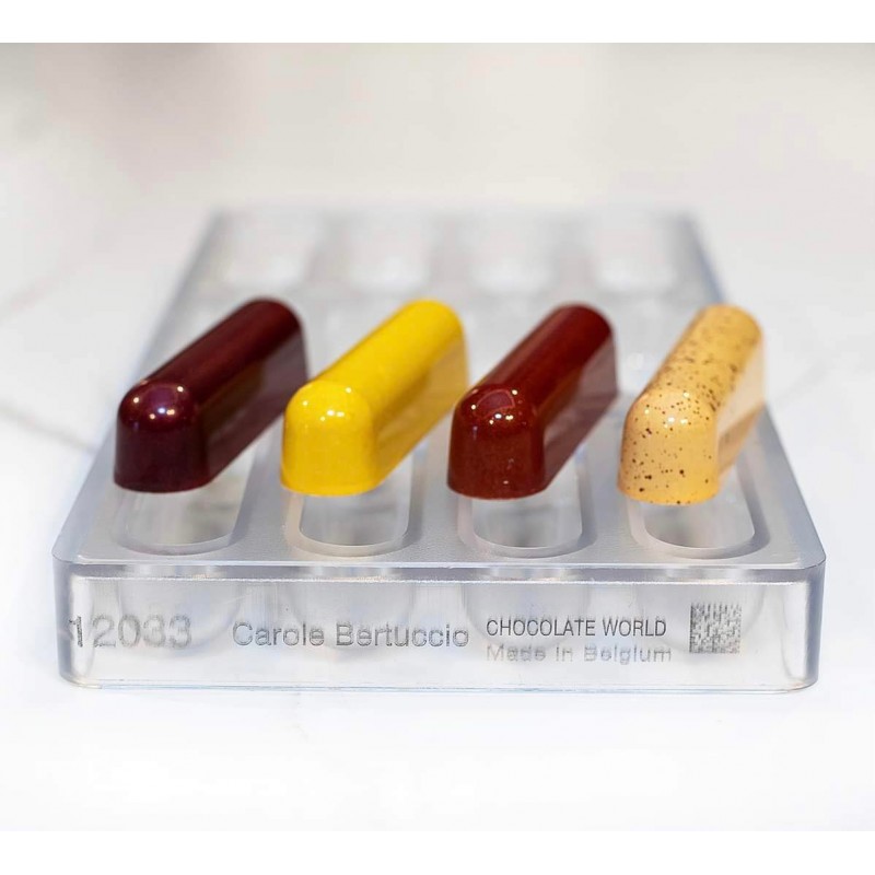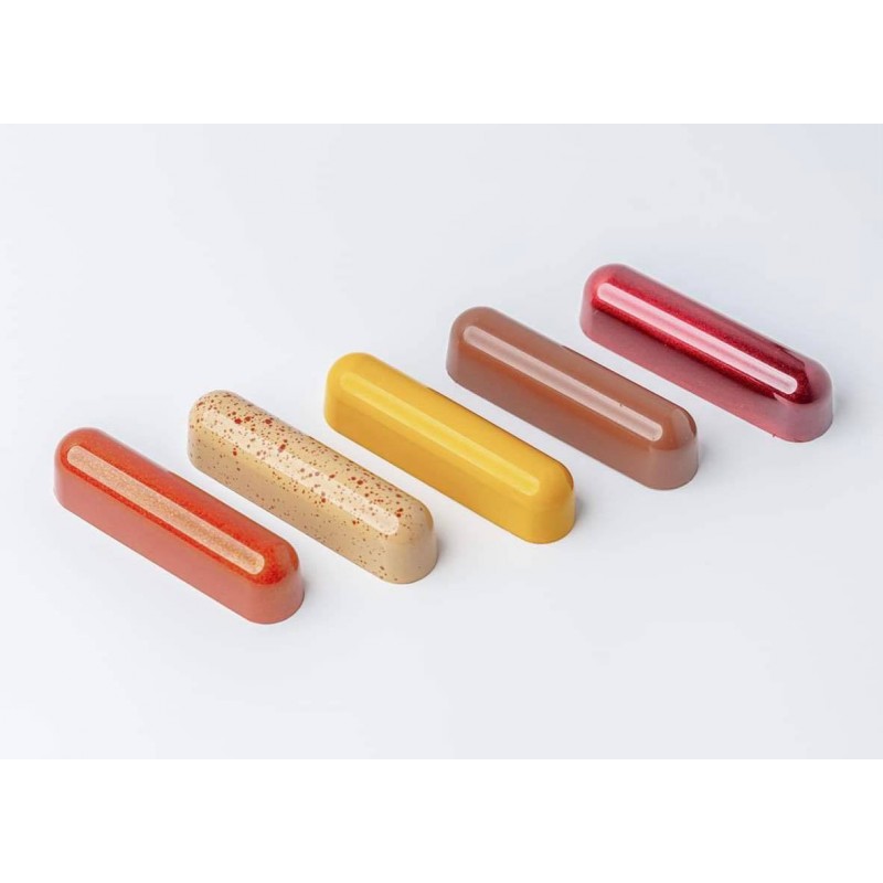 Molde de policarbonato Éclair Snack Bar Chocolate World. Diseño Carole Bertuccio